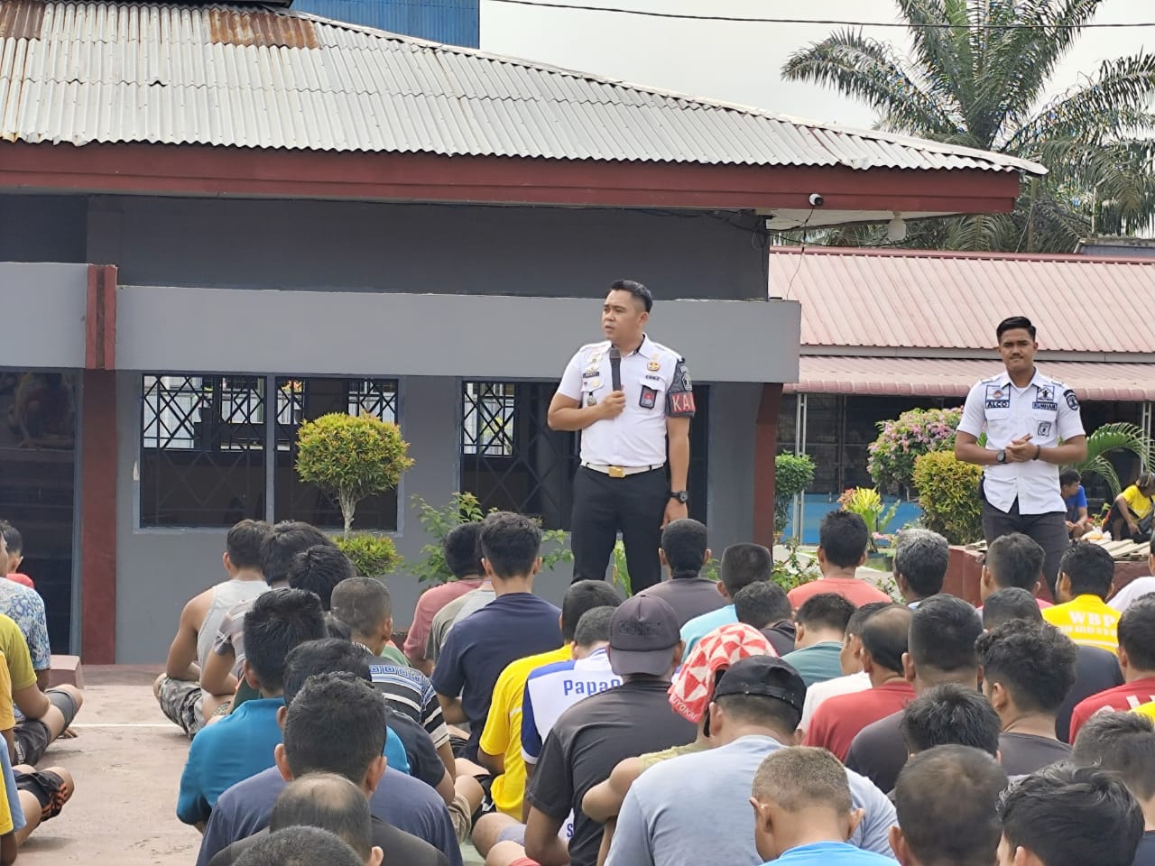 MM,  Rengat – Rabu, 28 Agustus 2024, Rumah Tahanan Negara Kelas IIB Rengat gencar melakukan sosialisasi anti gratifikasi dan pungutan liar (pungli) kepada warga binaan. Tampak Kepala Kesatuan Pengamanan Rutan Rengat, Wan Rezwanda, menyampaikan pemahaman terkait layanan yang diberikan kepada WBP di lapangan Rutan Rengat.
