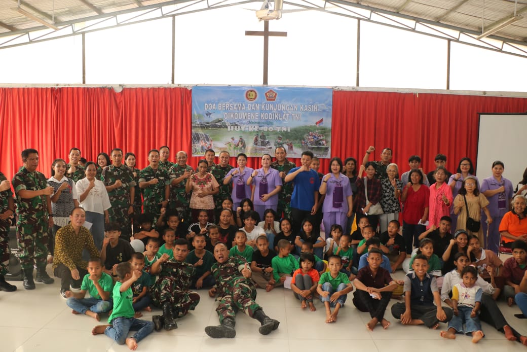 Tangsel, MM – Dalam rangka menyambut Hari Ulang Tahun (HUT) ke-80 Tentara Nasional Indonesia, Komando Pembina Doktrin, Pendidikan, dan Latihan (Kodiklat) TNI menggelar doa bersama dan kunjungan kasih Oikoumene ke Panti Asuhan Pintu Elok, Pamulang, Tangerang Selatan, Jumat (26/9/2025).